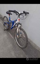 Vendo Mtb bambino 8/11 anni raggio 24, biammortizzata, 18 rapporti, cambio shimano. Cambio shimano da registrare, cavalletto da sostituire. No spedizione. Ritiro a mano anche a Parma