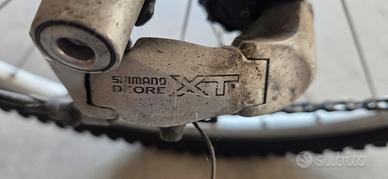 Vendo MTB 27 rapporti con cambio Shimano Deore XT, telaio in alluminio, molto leggera. Un po' datata ma perfettamente funzionante. Ritiro a mano.