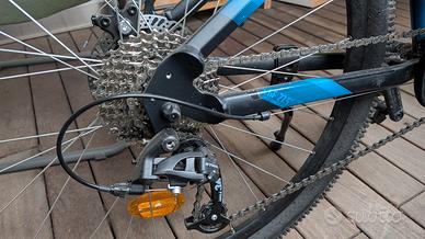 Colore nero-azzurro, 27,5", acquistata 2anni fa e usata molto poco. Taglia s adatta per altezza 150-164 cm. In ottime condizioni. Vendesi per passaggio a bici più grande.
