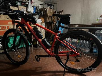 Vendo questa bellissima mountain bike Rockrider (Decathlon) di colore rosso fiamma, acquistata a ottobre per 500€ e usata pochissimo. La vendo a malincuore per motivi di salute che mi impediscono purtroppo di continuare a pedalare. ✅ Incluso nel prezzo – accessori aggiunti: ∙Borsa da telaio anteriore (RockBros) ∙Borsa sottosella ∙Portaborraccia con borraccia ∙Luci anteriore e posteriore ∙Porta gilet sotto il sellino 🎁 In regalo: ∙Guanti da ciclismo ∙Gilet catarifrangente