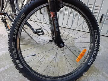 Vendo mountain bike da bambino. Rockrider 5.2 in alluminio, con ruote da 24", forcella ammortizzata e cambio Shimano 3x6. Copertoni Schwalbe Smart Sam nuovi.