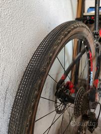 Vendo MTB RockRider 560, acquistata da Decathlon nel 2019, taglia M. Fornita di ruote da 27,5", ammortizzatore anteriore, freni a disco idraulici. Attualmente come copertoni sono montati dei Panaracer Gravelking SK, indicati per un utilizzo gravel. Vendo anche una seconda coppia di copertoni adatti ad un uso più fuoristradistico.