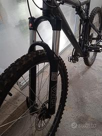 Vendo MTB full "Rockrider 9.1 100% pure mountain" da all mountain/enduro. Ruote da 26" e telaio taglia L (adatto a persone da 1,75 a 1,85). Sospensione anteriore idraulica, sospensione posteriore ad aria, cambio 7x3, freni a disco idraulici. In ottime condizioni e pronta all'uso, copertoni Kenda sostituiti da poco. Insieme REGALO pompa per la regolazione della sospensione posteriore, pompa per i pneumatici, kit manutenzione freni già iniziato ma ancora utilizzabile e coppia di parafanghi da poter montare a piacimento. Solo consegna di persona.