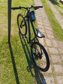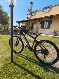 Vendo Mountain Bike Rockrider ST 530 in Taglia M (ideale per altezze tra 165 cm e 174 cm). La bici è un modello hardtail (ammortizzata all'anteriore) estremamente versatile, perfetta per escursioni su sterrato, sentieri collinari o percorsi misti. Grazie al sistema mono-corona, la gestione delle marce è semplicissima: hai un'unica leva sul manubrio, il che rende la guida molto più intuitiva e riduce la manutenzione rispetto ai sistemi tradizionali. Caratteristiche Tecniche: Taglia: M (1,65m - 1,74m). Telaio: Alluminio leggero con geometria CGF per una postura comoda e rialzata. Trasmissione: Mono-corona a 9 velocità (cambio fluido e preciso). Freni: A disco idraulici anteriori e posteriori per una frenata sicura in ogni condizione. Sospensioni: Forcella anteriore da 100 mm con regolazione del precarico. Ruote: 27,5 pollici a doppia camera, agili e resistenti. Accessori Inclusi nel Prezzo: Borsello al telaio con finestra touch: ideale per navigare con lo smartphone durante le uscite e riporre chiavi/documenti. Portaborraccia: già installato e pronto per le tue borracce standard. Stato del mezzo: La bicicletta è stata tenuta con cura ed è in ottime condizioni meccaniche. Freni e cambio sono perfettamente funzionanti. Usata pochissimo, praticamente nuova.