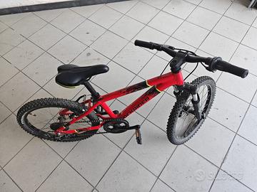 Vendo Mtb ROCKRIDER ST 900 rossa 20" acquistata nuova, con cavalletto, causa passaggio a bicicletta superiore, usata ma tenuta bene, telaio e pedali in alluminio, maniglia rotante per 6 velocità, freni a disco anteriori meccanici, forcella ammortizzata, reggisella in alluminio, peso 11,7 Kg, lunghezza 140 cm, larghezza 54 cm, altezza 80 cm