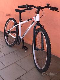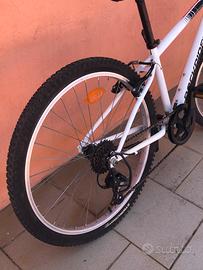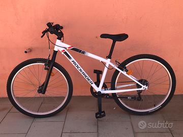 Mountain bike Rockrider ST100, taglia S (ideale per altezze tra 150cm e 165cm circa). La bici è stata acquistata e praticamente mai usata: è in condizioni immacolate, senza un graffio, esattamente come uscita dal negozio. Caratteristiche principali: • Stato: Condizioni "Mint" (pari al nuovo). • Telaio: Alluminio leggero, molto maneggevole. • Cambio: 21 velocità con comandi a manopola. • Ruote: 27.5" con copertoni nuovi (All Terrain) • Accessori: Già montati cavalletto laterale, campanello e catarifrangenti. Bici perfetta per chi cerca un prodotto nuovo risparmiando rispetto al prezzo di listino e ai costi di montaggio/accessori. Sempre tenuta in garage, pulita e pronta all'uso.