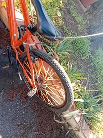 In vendita Mountain Bike Rockrider modello ST500 misura 26 pollici, colore arancione, cambio Mega 7 velocità, freni a pattino V-brake, forcella anteriore ammortizzata, cavalletto. Gomme in ottimo stato, ha qualche accessorio come copriraggi in tinta col telaio, peg posteriori richiudibili e porta borraccia. Perfettamente funzionante in ogni sua parte, è presente qualche piccolo graffio sul telaio. Attualmente costa 260€ da decathlon.
