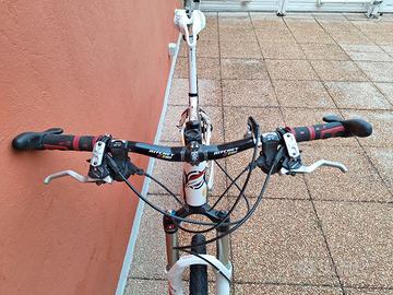 MTB un po' datata ma con telaio in carbonio e componentistica ancora all'altezza dell'utilizzo. Mai usata per fuori strada estremi,solo argini.Gommata di recente con coperture semiasfalto.Per persone alte da 168 a 175 cm.