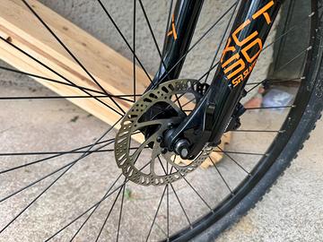 Mtb Scott Aspect 950 arancione taglia XL con meno di 1.000km Vendo per passaggio a eBike. Consegna solo a mano. SPECIFICHE TELAIO: Aspect 900-700 series / Alloy 6061 Custom Tubing / BSA73 / Internal Cable Routing / replaceable hanger FORCELLA: Suntour XCT30-HLO / Hyd. Lockout / 100mm travel DERAGLIATORE POSTERIORE: Shimano Altus RD-M2000 / 18 Speed DERAGLIATORE ANTERIORE: Shimano FD-M2020-TS / 31.8mm LEVE DEL CAMBIO: Shimano SL-M2010 / R-fire plus / 2 way release / w/gear indicator GUARNITURA: Shimano FC-MT2102 / 2-piece Design / 36X22 MOVIMENTO CENTRALE: Shimano BB-MT500 / Hollowtech II / threaded CATENA: KMC X9 CASSETTA: Shimano CS-HG200-9 / 11-36T FRENI: Tektro HDM275 Hydr. Disc DISCO DEL FRENO: Tektro / 6 bolt / F&R 160mm MANUBRIO: Syncros 3.0 / 720mm / black / 31.8mm / 12mm rise / 9° BS / Syncros Pro Grip ATTACCO MANUBRIO: Syncros 3.0 / 7° / Black REGGISELLA: Syncros 3.0 / 31.6mm / 350mm / Black SELLA: Syncros 3.0 SERIE STERZO: Syncros OE Press Fit / 1 1/8" / OD 50mm / ID 44mm MOZZO ANTERIORE: Formula DC-19 FQR Disc MOZZO POSTERIORE: Formula DC-25 8s RQR Disc RAGGI: 14 G / stainless / black CERCHIO: Syncros X-20 Disc / 32H / black GOMMA ANTERIORE: Kenda Booster / 2.4" / 30TPI GOMMA POSTERIORE: Kenda Booster / 2.4" / 30TPI PESO IN KG (APPROX.): 14.40