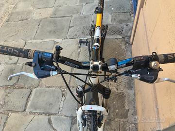 Pietra miliare della SCOTT, uscita inizio anni 2000 come la bici biammortizzata più leggera al mondo. bici vissuta ma perfettamente funzionante in tutto, manubrio e manopole originali SCOTT, cambio Shimano LX Deore, forcella SR Sontour bloccabile dal manubrio. gomme in ottimo stato. taglia M (1,65cm-1,75cm) usata negli ultimi anni per uso cittadino in cui è perfetta per non sentire le asperità. telaio vissuto soprattutto a causa della catena per chiudere la bici. centro storico, prezzo non trattabile visto cosa viene venduto sul sito per cifre anche superiori..
