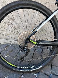 MTB alluminio taglia M, front. La bici è in buonoe condizioni, è stato fatto un upgrade; passando al mono corona, in più; cambiato ruota anteriore, freni nuovi e gomme nuove 29”, sella nuova, corona pacchetto pignoni e catena nuovi, (2 piccoli bozzi sul telaio vedi foto).