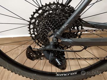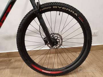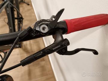 La bici è stata completamente tagliandata presso la nostra officina. Telaio Scale Alloy 6061 Forcella Rock Shox Judy Silver TK Solo Air, 46mm offset, RideLoc, 100mm Cambio SRAM SX Eagle 12v Comando cambio SRAM SX Eagle Trigger 12v Guarnitura SRAM SX Eagle DUB Boost, 175mm Corona 32T Cassetta pignoni SRAM SX-PG1210 11-50 12v Catena SRAM CN SX Eagle Freni Shimano MT200 Rotori Shimano SM-RT10 CL 180/160mm Ruote Syncros Copertone ant. Vittoria Syerra 29x2.25 Copertone post. Vittoria Barzo 29x2.25 Manubrio Syncros Alloy 6061, flat 740mm 9° Attacco Syncros FL2.0 6° Reggisella Syncros Alloy 31,6x400mm 0mm offset Sella Fizik Antares R7 Peso Kg 13,500 Misura XL Anno 2022 Colore Dark Grey/red Spedizione Italia € 70,00 Isole e località disagiate