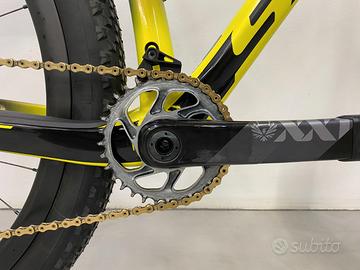Produttore:Scott Codice articolo:L8-395 Misura:M/45 Altezza sella:68-75 cm Caricabatterie:AXS Telaio:Scott Scale Carbon Disc 29" Forcella:Rock Shox SID Select + Air 100mm Cambio:Sram GX Eagle AXS electronic wireless Freni:Sram Level TLM Disc hydraulic Guarnitura:Sram XX1 Carbon Manubrio:Syncros Fraser IC SL Carbon Ruote:Syncros Carbon 29" Reggisella:Carbon Peso:9,7 KG