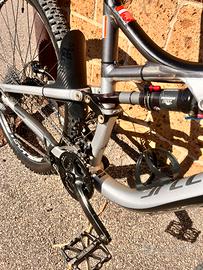 Mountain bike biammortizzata full, Versione COMP, Pellicolata, Con reggisella telescopico da 150mm, doppia corona 11-36 con pacco pignone 9x a 10 velocità (10x2), ammortizzatore fox specialized con autosag 3 posizioni, forcella fox Float 29, revisionate anno 2024, gomme all'90 %, cerchi mavic 29,