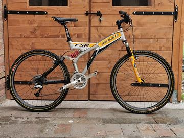 Vendo come da titolo, mtb Specialized Stumpjumper FSR, acquistata e poco dopo inutilizzata per passaggio ad altro medello. I componenti sono perciò ancora originali e sono elencati qui sotto: Specialized Stumpjumper FSR *Ground Control Comp* Size L Components Component GroupShimano Deore LX Pedals Ritchey Logic Bottom Bracket Specialized sealed cartridge BB Shell Width 68mm English Chain Sachs, 1/2 x 3/32inch Spoke Brand Stainless steel, 1.8mm straight gauge Spoke Nipples Brass nipples Hubs Front: Specialized Superfly Stout w/aluminum Skraxle, Rear: Shimano Deore LX Rims Mavic 221, 32-hole Tires Front: 26 x 2.00inch Specialized Team Control Comp, Rear: 26 x 1.90inch Specialized Team Master Comp Frame Construction TIG-welded Fork Brand & Model Rock Shox Judy XC Cassette 8-speed, 11 - 30 teeth Crankset Specialized Strong Arm Pro, 22/32/42 teeth Rear Shock Rock Shox Deluxe, 4.25inch travel Handlebar Ritchey Forcelite Handlebar Stem Specialized aluminum Headset 1 1/8inch threadless Ritchey Logic Saddle Specialized Prolong Revolution Carbotech w/kevlar edge Seatpost Ritchey Expert, 30.9mm diameter Brakeset Avid 1D-20 brakes, Avid SD-1.9 L levers Fork Material Aluminum/magnesium, triple-clamp crown Frame Tubing Material Specialized full AT heat-treated aluminum Shift Levers Shimano Deore LX RapidFire SL