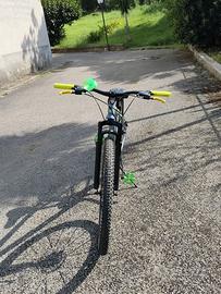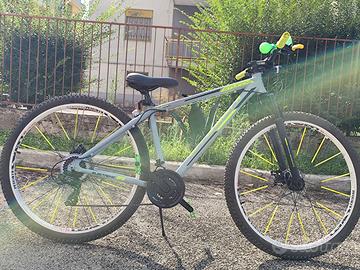 Bicicletta Mountain bike stucchi colore grigio opaco e giallo fluo n.29 cambio 3x7 rapporti (a scatto). Corona, e gruppo deragliatore Shimano tourney;freni a disco; ammortizzatori anteriori. La bicicletta è usata pochissimo, pari al nuovo, non presenta segni di usura evidenti.