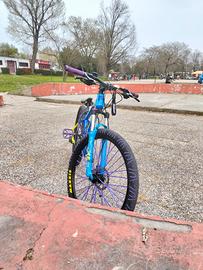 Mountain bike (MTB) suprema 27,5. una buona bici, mai dato problemi. Le seguenti modifiche sono: Manopole viola e nere Copertoni maxxis (solo quelle 80€) Pedali antiscivolo con chiodi viola Copri raggi viola Contachilometri Ruote colorate di viola Portaborracce blu-viola 2 Portachiavi. uno "Got boost" ed uno di Gaerne con la "G" La bici ha 21 marce 3 di base e 7 normali Freni a disco perfetto per impennare. per maggiori foto non esitate chiedere! No perditempo!