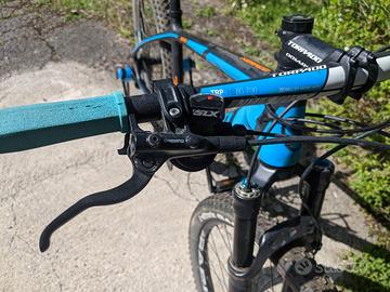 Mountain bike front. Marca Torpado, modello Nearco anno 2018. Telaio in carbonio taglia M. Ruote 27,5", cambio Shimano doppia corona SLX, freni a disco Shimano, forcella Formula escursione 100 mm. Gommata Vittoria Barzo. Solo ritiro (Siena), nessuna spedizione. Forcella pienamente funzionante con comando di blocco non attivo.