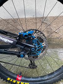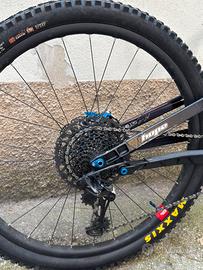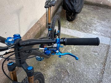Marca Bici : HOPE Anno : 2021 Categoria: trail bike Materiale telaio: carbonio, carro in alluminio ricavato dal pieno Ruote: 29”, in carbonio marca Santa Cruz Taglia: M Corsa ant/posteriore: 140/130mm Ammortizzatori Fox Factory, Fircella36 e ammo FloatX2, Fox Factory anche il reggisella telescopico. Tutta finitura kashima. Impianto frenante, pedivelle, pedali, manubrio (in carbonio), movimento centrale,mozzi, serie sterzo tutti in alta qualità Hope