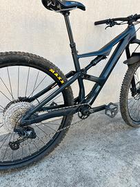 Forcella Marzocchi Bomber Z2, Ammortizzatore Fox, Trasmissione e freni Shimano SLX, ruote da 29, copertoni Maxxis.