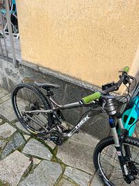 vendo a malincuore bellissima trek fuel ex6 taglia m autografata da torquato testa causa cambio taglia,la bici è perfetta ed è sempre stata trattata benissimo e regolarmente revisionata.La bici è stata usata quasi esclusivamente per giri in pianura ma è perfetta anche per chi si vuole divertire in bikepark.La bici monta una forfella rockshox sektor da 130 mm,serie sterzo fsa,manubrio e attacco manubrio bontrager,cerchioni da 26 pollici bontrager at 850 disc,cambio posteriore shimano slx da 10 velocità e cambio anteriore shimano deora da tre velocità,freni avid elixir 3 e dischi entrambi da 180 mm uno avid e l’altro shimano,pastiglie semimetalliche cambiate poco fa,sellino telescopico della pnw components con attacco al manubrio.La bici risulta perfetta,manca solo l’ammortizzarore dietro che si era rotto cambiando ammortizzatore la bici è pronta all’uso.Per altre info contattatemi in privato