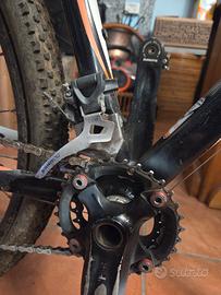 il cambio è marca shimano con 2 corone davanti e 10 dietro, monta dei rapporti da gara fatti su misura.