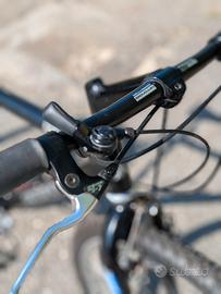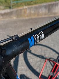 Cannondale M1000 versione montata con gruppo Suntour XC Comp. Tubazioni integre e senza ammaccature, colore nero, c'è una sbiaditura del nero nel fondo dei foderi della forca Pepperoni ed in prossimitá del deragliatore anteriore. Il tutto rimane comunque al di sotto dello strato di smalto trasparente. bicicletta taglia S (esisteva anche la XS) per persone di altezza inferiore o di poco superiore al metro e 70. Bicicletta reattiva e leggerissima peso inferiore a 11 kg, montata con componenti top dell'epoca.