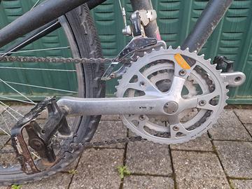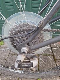 Vendo splendida e rara Mountain BikeScout Racing Equipment 9000dei primi anni '90, un vero pezzo di storia del ciclismo caratterizzato dall'iconico telaio afoderi rialzati (Elevated Chainstay). La bici è un conservato eccezionale, montata con componentistica top di gamma dell'epoca, ideale per collezionisti o per chi cerca un mezzo unico per eventi vintage (tipo L'Eroica MTB) o uso urbano con stile. CARATTERISTICHE TECNICHE DI PREGIO: TELAIO:Realizzato in acciaioTange MTB CR-MO(Cromo-Molibdeno), tubazioni giapponesi di alta qualità, leggere e resistenti. GRUPPO COMPLETO:Monta unShimano Deore LXintegrale e coerente (Cambio, Deragliatore, Guarnitura e Freni Cantilever). TECNOLOGIA CULT:Corone ovaliShimano Biopace-SGoriginali, con dentatura in ottime condizioni. COCKPIT:ManubrioRitchey ForceLite(alluminio aeronautico 2014 T6) e attacco manubrioZoom Patent Pend.in alluminio spazzolato. RUOTE:CerchiAmbrosio(Made in Italy) dritti e robusti. COMANDI:IntegratiShimano STI / SLRperfettamente funzionanti e con grafiche integre. STATO E CONDIZIONI: La bicicletta è strutturalmente perfetta, senza crepe o bozzi sul telaio. La verniciatura e le decalcomanie originali sono ben conservate. La meccanica di alta gamma Shimano garantisce ancora oggi precisione e affidabilità. PREZZO:490€ (leggermente trattabili per chi conclude rapidamente) NOTE: Un'occasione rara per acquistare una MTB "Full Spec" con telaio a foderi rialzati in queste condizioni. Disponibilità di altre foto