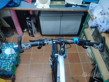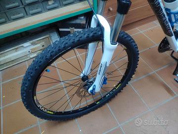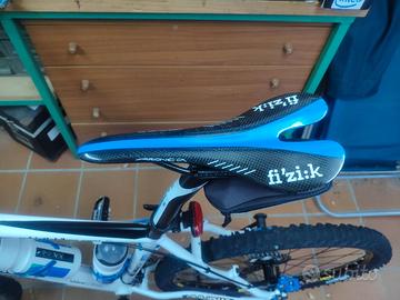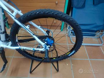 Vendo splendida mountain bike front Whistle 1271 26" in eccellenti condizioni. Telaio in alluminio idroformato taglia L, sospensione anteriore 100mm XCR Suntour SR, freni a disco idraulici da 160mm con controllo remoto su manubrio. Cambio a 27 velocità (3x9) deragliatore anteriore Shimano Alivio e posteriore Shimano Deore. Sella Fizik in carbonio con finitura in tinta, tubo sella Elita One Pro in carbonio con finitura in tinta, manubrio Opera in carbonio, pipetta Matrix in carbonio. Cerchi Mavic Cross Max, coperture Michelin Country Mud 26x2.00, Borsa porta oggetti sotto sella, porta telefono in alluminio aeronautico su manubrio, campanello elettronico in tinta, specchietto laterale in tinta, doppia borraccia con porta borraccia in tinta. Un vero gioiellino tenuto in maniera impeccabile e sempre manutenuta. Astenersi perditempo.