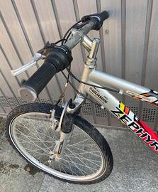 Vendo MTB Zephyr TRL 240 in alluminio, una bici leggera, scattante e facile da guidare, perfetta per spostamenti quotidiani e giri su sterrato leggero. Il cambio Shimano garantisce cambiate fluide, mentre la forcella ammortizzata assorbe bene buche e vibrazioni. Le ruote da 24” la rendono ideale per ragazzi/e o adulti non troppo alti che cercano una bici pratica e maneggevole. La bici è in buone condizioni generali, pronta per essere usata senza bisogno di interventi immediati. Ottima per chi vuole una MTB affidabile, comoda e dal prezzo accessibile.