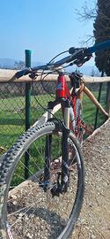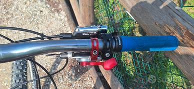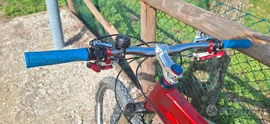 Vendo MTB Niner Rip 9 rossa, Taglia L, ruote da 29’’. Telaio Full in alluminio. Forcella RS Reba RLT Ti 120mm PP20mm. Ammo RS Monarch RT3 115mm Debon Air Mid Reb Sellino Telescopico KS E20 Cambio Sram X0 9Velocità, 2 corone, cassetta 11/36. Guarnitura Race face Deus XC. Movimento centrale Shimano 8000. Freni XT Disc Brake BR-M785-B con rotori braking 180/180mm Pneumatici Schwalbe 29x2,25 Tubeless ready con lattice Sterzo Hope, attacco manubrio Thomson. Telaio in ottimo stato, qualche segno dovuto all’utilizzo.
