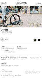 MV Agusta AMO R nuova, cambio Shimano Vendo e-bike MV Agusta AMO R nuova, praticamente mai utilizzata per problemi fisici. Taglia M. Versione con trasmissione a catena e cambio Shimano, montati come optional ufficiale da concessionario MV Agusta. Molto più versatile rispetto alla versione monomarcia originale, soprattutto in salita e nell’uso quotidiano. Bici elettrica leggera e curata nei dettagli, perfetta per la città: • motore Mahle X35 nel mozzo posteriore, fluido e silenzioso • autonomia reale fino a circa 70 km (dipende da livello di assistenza e percorso) • velocità assistita fino a 25 km/h • batteria integrata ricaricabile in circa 3–4 ore • peso contenuto (circa 15 kg), facile da gestire anche senza assistenza Bicicletta elettrica pari al nuovo, nessun lavoro da fare. La solo per inutilizzo. Zona: Noventa Padovana (PD) Prezzo: 1200€ trattabili Disponibile per visione.