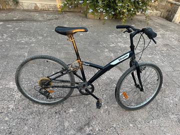 - Bici Trekking bambino 24 pollici Btwin Original-One (9-12 anni , altezza da 135 a 150 cm) . Telaio in acciaio colore nero, cambio 6 Rapporti con pignoni 14-28. Freni V-Brake . Dotata di campanello e cavalletto. Sellino e manubrio entrambi regolabili in altezza. Peso complessivo 13
