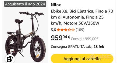 Vendo bici elettrica nilox acquistata a 950.00€ nell’agosto 2024, usata solo nei mesi estivi,