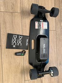 Nilox DOC SKATE: lo skateboard per cavalcare l'onda elettrica! Basta un piccolo telecomando e la tecnologia Nilox, per trasformare una tavola in uno skateboard capace di viaggiare a una velocità di 12 Km/h. Una ricarica di 2 ore garantisce un’autonomia di 20 Km. Stabile e facile da trasportare grazie alla maniglia integrata nella pedana. Diametro ruota: 3,3 Pollici Capacità batteria: 4.400 mAh Durata batteria: 20 Km Peso massimo sostenuto: 100 Kg Velocità massima: 12 Km/h Numero Motori: 1 Potenza motore: 200 W DIMENSIONI Larghezza: 75 cm Altezza: 13 cm Peso: 6 Kg.