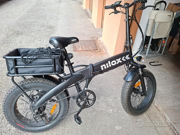 Vendo Nilox J4 Fat Bike Elettrica Pieghevole - FirenzeVendo bellissima Nilox J4, fat bike elettrica pieghevole in ottime condizioni, nera . Usata con cura, sempre in garage, perfettamente funzionante. Ideale per città e sterrato grazie a gomme FAT 20x4", forcella ammortizzata e freni a disco.Caratteristiche PrincipaliMotore brushless 36V 250W, velocità max 25 km/h.Batteria removibile 36V 8-13Ah (integrata nel telaio), autonomia fino a 70 km in modalità assistita, ricarica 4-6 ore.Cambio Shimano 7 velocità, display LCD con 5 modalità PAS, luci LED anteriori/posteriori.Telaio alluminio pieghevole, sella comoda, pedali, portapacchi posteriore con rete e cestino.Peso circa 24-25 kg, portata max 120 kg.Condizioni eccellenti, nessun graffio visibile nelle foto, pronta all'uso. Ritiro a mano solo a Firenze, no spedizione..Contattami per prova o info! Zona Firenze sud.