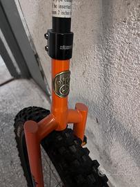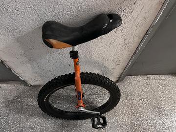 Le Nimbus 24” Mountain Unicycle (Muni) è un monociclo da fuoristrada robusto, con ruota da 24”, mozzo ISIS e copertone largo da 3”. Componenti principali •Telaio: Nimbus II Muni 24”, acciaio (4130 CrMo) con supporti cuscinetti lavorati da 42 mm e attacco per freno idraulico magura •Sella: Nimbus gel / Nimbus (arancio‑nero) con maniglia frontale per il controllo in off‑road. •Reggisella: 25,4 mm x 300 mm in alluminio, con piastra di fissaggio rinforzata a 4 fori. •Mozzo: Nimbus ISIS 36 fori, passo 100 mm. •Cuscinetti: 22 mm x 42 mm (standard Nimbus/ISIS per unicycle da montagna). Ruota e misura •Dimensione ruota: 24” (ETRTO 507 mm). •Cerchio: larghezza circa 42 mm, a doppia camera, pensato per gomme larghe. •Copertone: Duro 24” x 3.0” •Camera d’aria: 24” x 2.7”–3.0”. Guarnitura, pedali e freni •Pedivelle: Nimbus VCX 150 mm, attacco ISIS, pensate per controllo in discesa e salite ripide. •Pedali: Piattaforma Nimbus con perni in metallo e asse in CrMo da 9/16”, molto grippanti su trail •predisposizione freno magura idraulico Freno