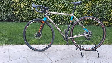 Bellissima gravel Niner in acciaio, personalizzata. Il telaio è stato sverniciato, lucidato e nichelato. Tutte le decorazioni sono state fatte ad aerografo da un noto specialista e poi protette da uno strato di vernice trasparente. Gruppo Sram Force monocorona Z38 con pacco pignoni Sunrace 11 - 40 Mozzi American Classic con cerchi Crest Tubeless, manubrio Salsa Woodchipper. Pneumatico posteriore Bontrager 700 x 42 nuovo, così come pastiglie anteriori e posteriori. Pneumatico anteriore Schwalbe 700 x 40 ancora in ottime condizioni. Usata prevalentemente su strada, ottime condizioni. Non sono interessato a permute, cedo per esubero. Simile a Cannondale, Specialized, Trek, Giant, 3T, Open, Ridley, Bianchi, Wilier Triestina, Pinarello ecc .