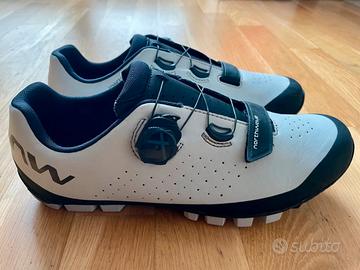 - Produttore: Northwave - Modello: Hammer Plus - Categoria: scarpe gravel/MTB - Taglia: 43,5 (EU) - Colore: grigio chiaro/nero - Condizioni: come nuove, indossate una sola volta - Prezzo consigliato: 134,99 (nuove) - Peso: circa 440 grammi - Materiale esterno: sintetico - Suola: gomma - Chiusura: Northwave SLW3/velcro - Confezione originale inclusa