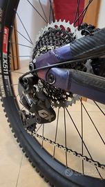 Telaio Nukeproof mega carbonio boost M 2019 Mullet. Ammortizzatore: Ohlins TTX (revisionata e perfettamente funzionante) Forcella: Ohlins RXF 35 (eseguita modifica cartuccia idraulica nuova booxer + revisione completa per 650euro). Cerchi: DT swiss ex 511 tubeless ready + mozzi hope pro 4 (Nuovi 350€). Mullet, quindi anteriore 29 e posteriore 27.5. Trasmissione: Sram gx egle 12v catena gx nuova. Impianto frenante: Formula Cura 2. Manubrio: Spank spike vibracore. Pedali: crankbrothers stamp 7. La mountain bike presenta segni dovuti al normale utilizzo. Mtb improntata per il gravity, Utilizzo: Enduro e Downhill