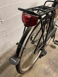 Cambio a più velocità (Shimano), telaio robusto ma leggero, freni a pattino, portapacchi posteriore e parafanghi.