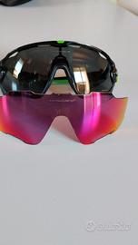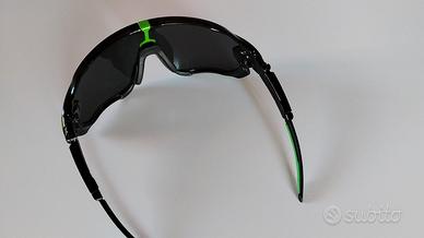 Occhiali Oakley Jawbreaker Cavendish Signatures Series nerri / Verdi Prizm Road. Occhiali da sole con montatura O Matter per una leggerezza e comodità assoluta, aste in Unobtanium per una completa aderenza. Si caratterizzano per disporre di una sola lente con un amplio campo visivo e forature per la ventilazione per evitare la formazione di condensa, ideali per il ciclismo da strada. I Jawbreaker Cavedish sono il frutto della collaborazione di Oakley con il ciclista britannico Mark Cavedish, vincitore di più di 100 tappe nei gradi giri. Caratteristiche principali: Lente: Lente Prizm che offre un controllo della trasmissione della luce senza precedenti, fornendo colori regolati, massimo contrasto e una grande precisione per una migliore visibilità, soprattutto per attività sportiva. Lente intercambiabile, antiappannamento e con una ampio campo visivo. Realizzati in materiale O Matter, molto leggero, resistente e duraturo; offre una grande comodità durante tutta la giornata Con tecnologia Switchlock, che permette cambiare le lenti facilmente, grazie all'utilizzo di un semplice meccanismo che con un click libera la lente e si potrà montare la nuova velocemente e in sicurezza Aste Unobtanium per una perfetta aderenza Protezione nasale smontabile Accessori inclusi: Borsa in microfibra Custodia di protezione Set 3 lenti