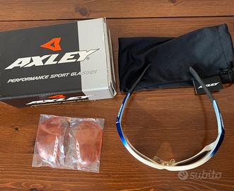 Occhiali da sole, da ciclismo “ Axley” anni’90, con lenti colorate di ricambio. Nuovissimi, in perfette condizioni