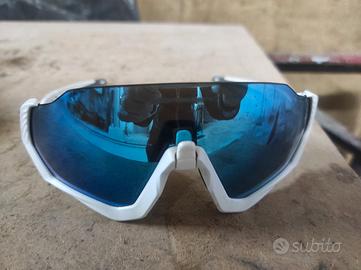 vendo oackley Flight jacket originali .. la montatura è perfetta però la lente presenta su tutta la superficie dei micro puntini ( come da foto) a causati dalla pioggia di diserbante agricolo da un trattore.. però indossandoli dall interno la visione è perfetta.. sono simili agli encoder Kato radar prizm sutro