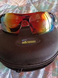 occhiali per bici/running Tomount con 5 vetri intercambiabili, custodia rigida, usati in buone condizioni, vendo per inutilizzo.