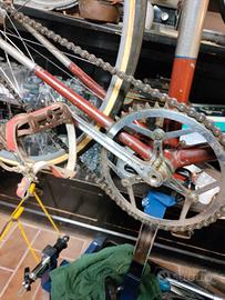 olmo cambio campagnolo due stecche mozzi ruote campagnolo ruota libera 4 velocità tubolari Clement sella Brooks leve e freni Universal brev.361668 guarnitura FB punta piedi Cornez movimento centrale alleggerito cerchi alluminio 36 raggi raggi sfinati manubrio e pipa acciaio