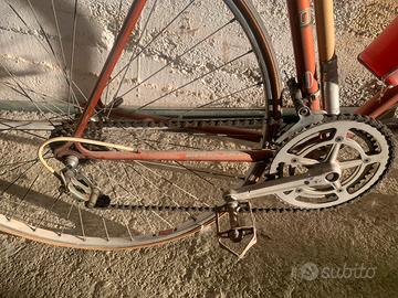 Vendesi olmo gentleman d'epoca in ottimo stato tubolari nuovi, attualmente con manubrio dritto ma presente manubrio originale da corsa. Pompa olmo originale dell'epoca e borraccia. Valuto offerte sensate o scambi con cose di pari valore.