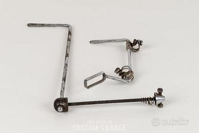 Attacchi manubrio e manubri, pedali, puntali, cambi, deragliatori, leve freni e manettini cambio, tubi sella, selle, mozzi, ruote, guarniture, forcelle, fregi, accessori e cataloghi.