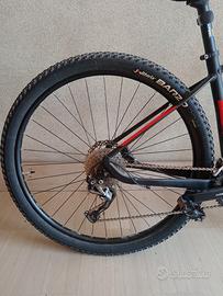 27 velocità, freni a disco anteriore e posteriore, blocco ammortizzatore anteriore, porta borraccia, cerchi da 29.
