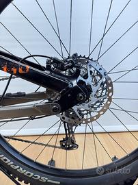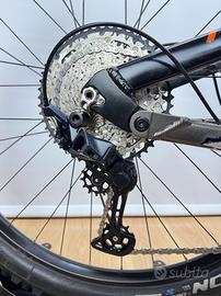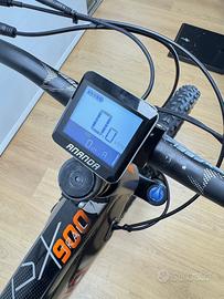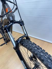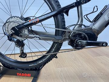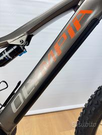 Olympia EX900 Trail 140 del 2022 usata garantita ma completamente revisionata dai nostri meccanici con motore nuovo 0 Km appena sostituito, il precedente motore aveva percorso 3355 km, batteria integrata da 900Wh con celle nuove ripristinate da centro specializzato, trasmissione e manopole nuove un vero affare per chi cerca una prima e.bike. Bici utilizzata esclusivamente nei weekend per uscite amatoriali, presenta evidenti segni sul telaio di utilizzo ma semplicemente estetica, la meccanica è tutta perfettamente integro e funzionante. Telaio in alluminio con ruote da 29 pollici, super motore da 100Nm e trasmissione Shimano a 12 velocità, taglia M adatta per altezze da 170 a 176 cm circa.